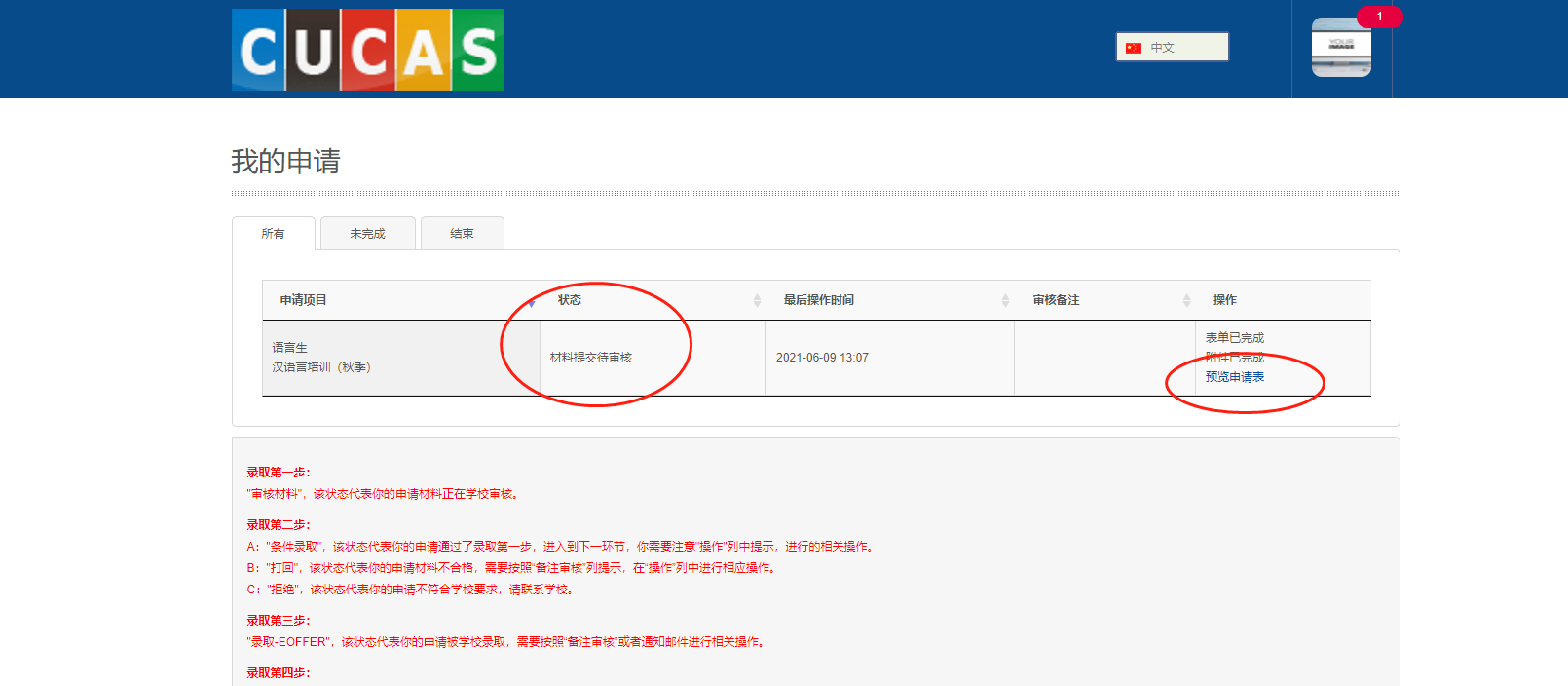6、点击“开始申请”,发起申请。(右上角可以进行语言切换)
