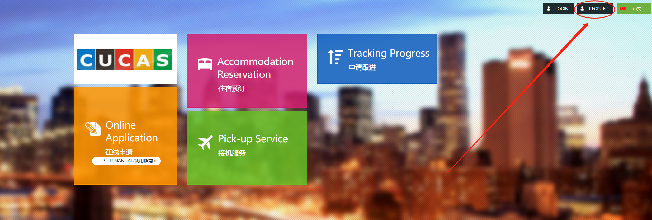 1、打开网址https://admission.bda.edu.cn/cn/,点击右上角“注册”。